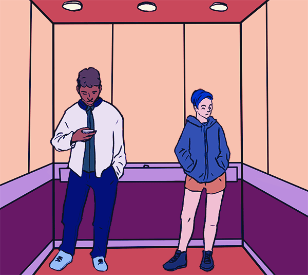 An animated gif that represents how I feel during awkward rides in an elavator.