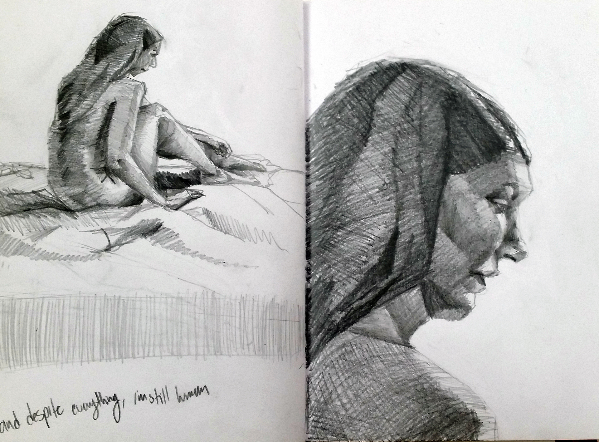 Oil paintings and graphite drawings of live models done during the summer of 2016. Work times range from ten minutes to two hours.